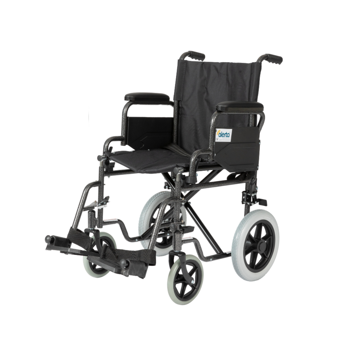 The Alerta Car Transit Wheelchair is a crash-tested, transport-ready wheelchair designed for safe and comfortable travel. Equipped with drop-down armrests, swing-away detachable footrests, and rear brakes, it provides easy access and reliable support. Its puncture-proof tyres and compact frame make it ideal for both daily use and vehicle transport.